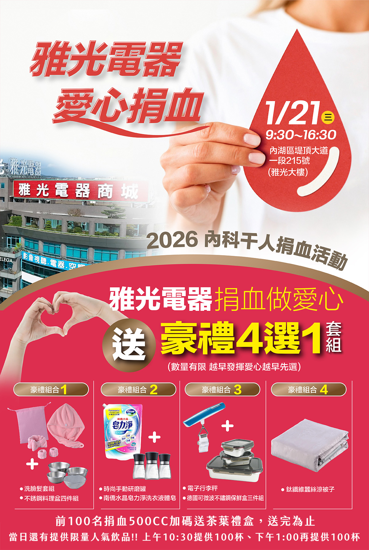 前100名捐血500CC加碼送茶葉禮盒,送完為止