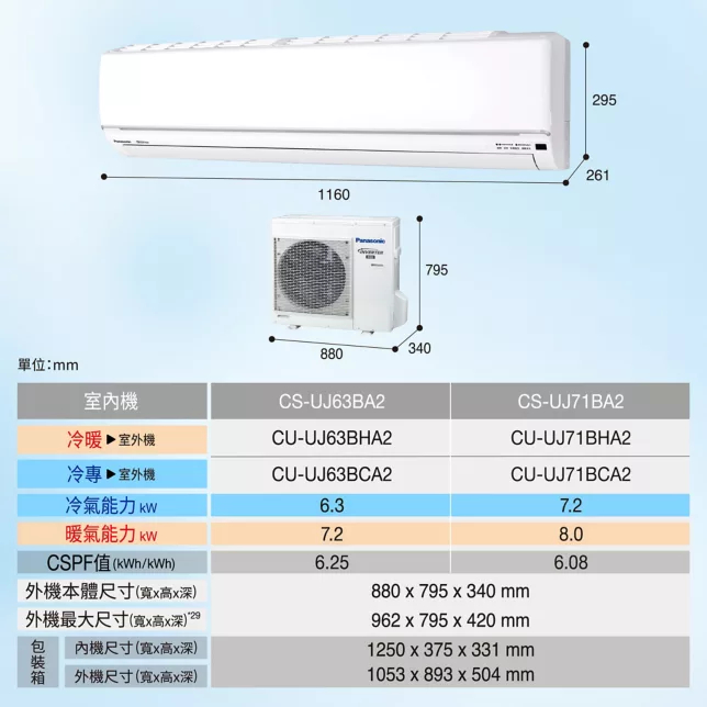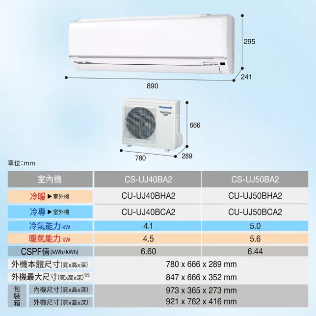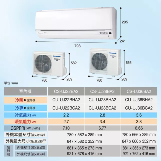 Panasonic 國際 4-5坪 UJ精緻系列 冷暖變頻分離式冷氣 CS-UJ36BA2 / CU-UJ36BHA2