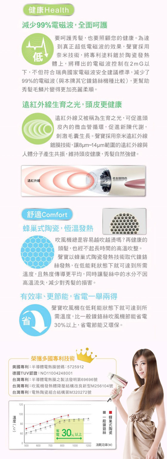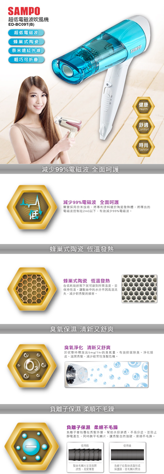 SAMPO 聲寶 超低電磁波吹風機 ED-BC09T(B)