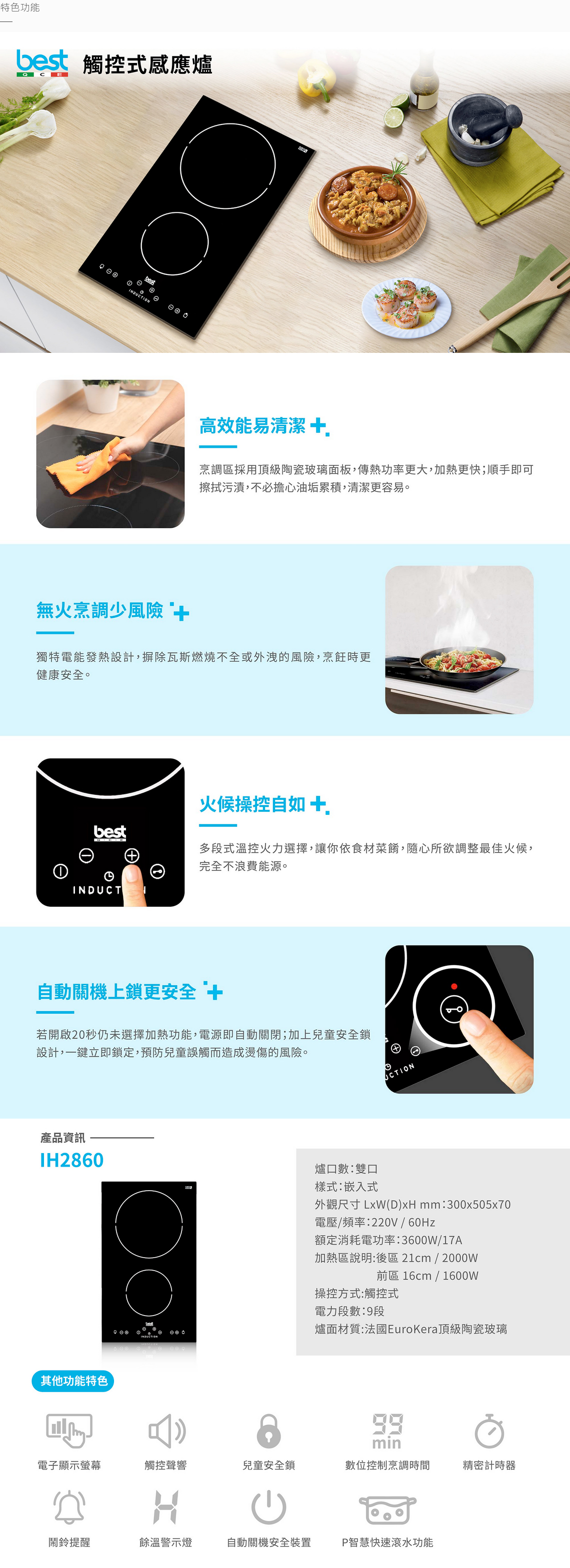best 貝斯特 嵌入式雙口感應IH爐 IH2860(不含安裝)(福利品)