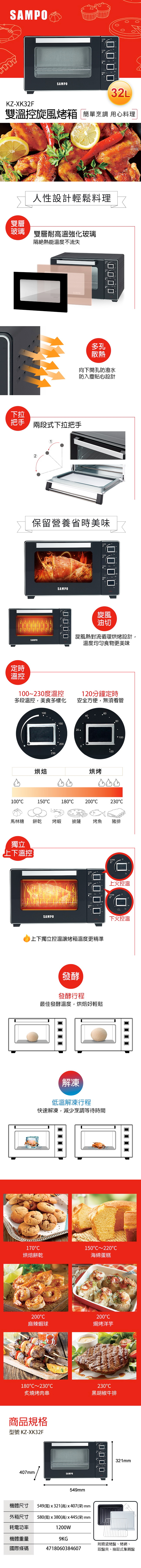 SAMPO聲寶 32公升雙溫控旋風烤箱 KZ-XK32F