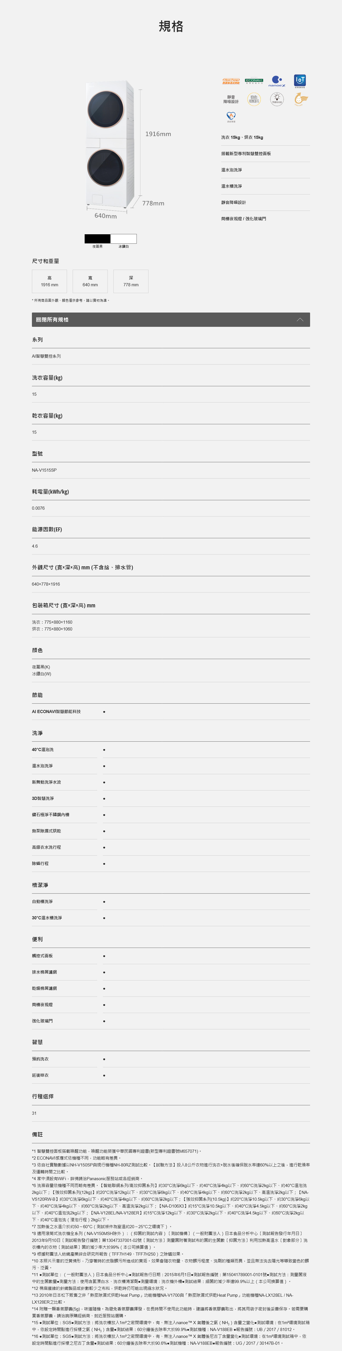 洗衣 15kg、烘衣 15kg