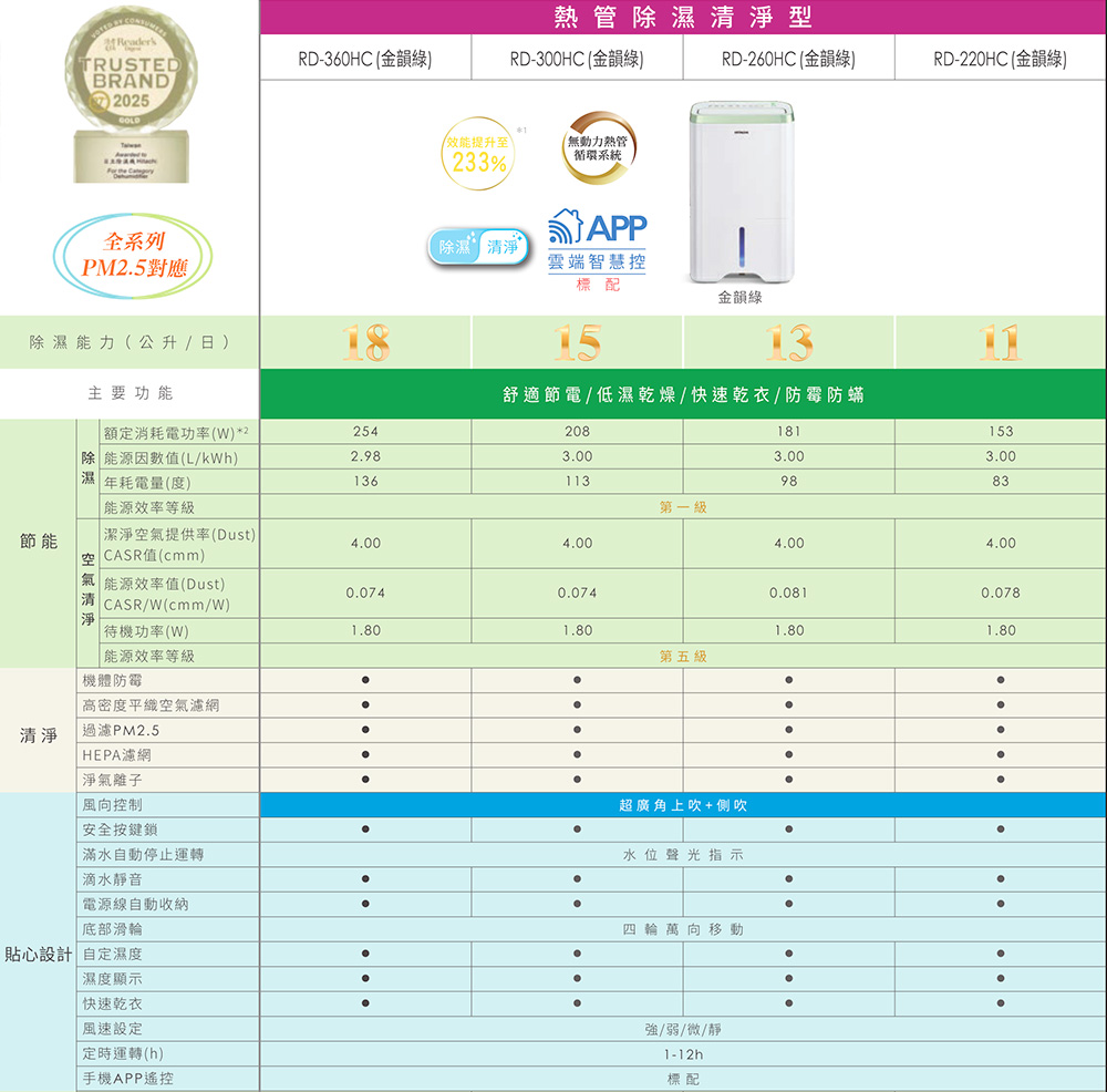 HITACHI 日立 15L熱管清淨型除濕機 RD-300HC 金韻綠