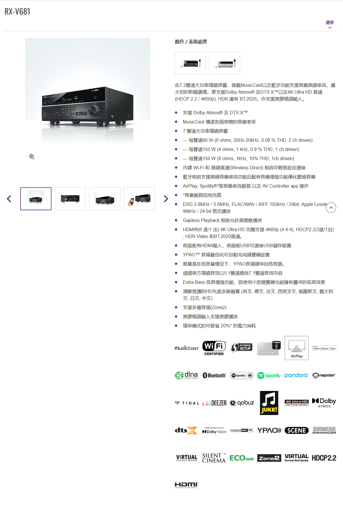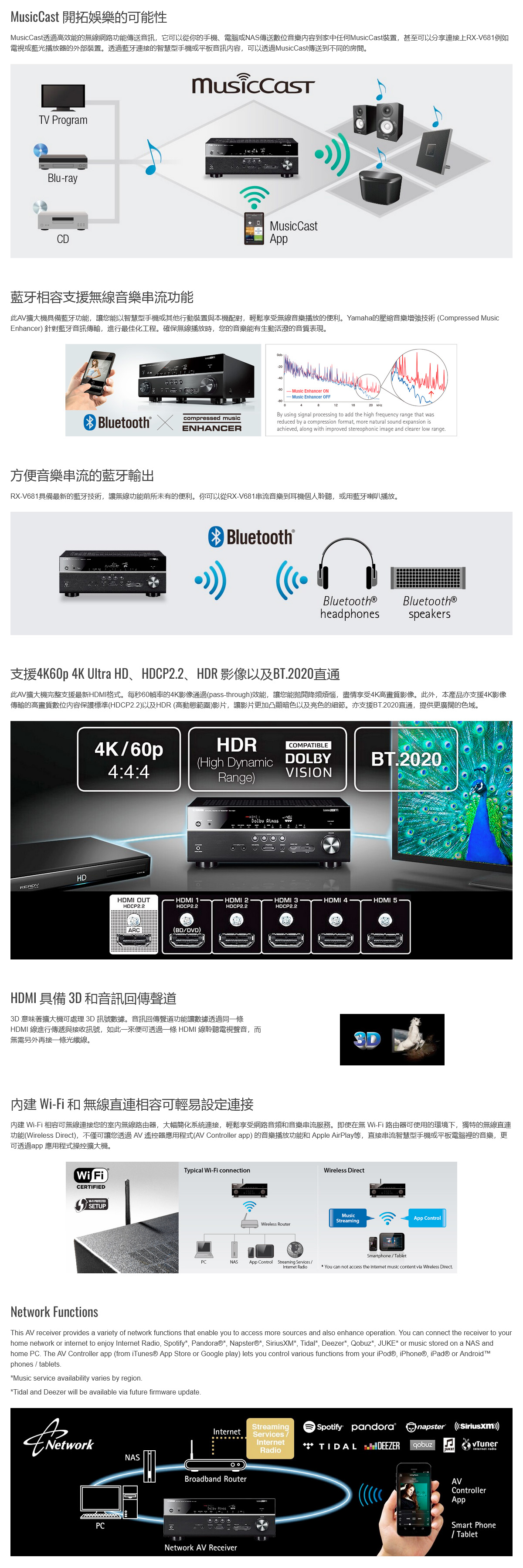 YAMAHA 7.2聲道 AV 擴大機 RX-V681 (福利品)