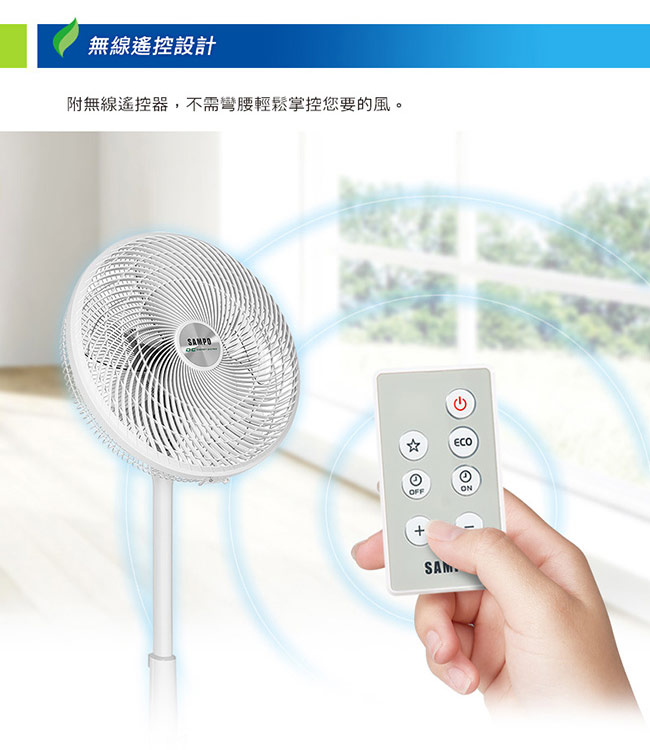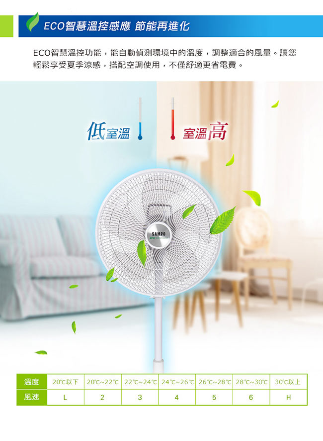 SAMPO 聲寶 16吋智能溫控DC直流電風扇 SK-FL16DR