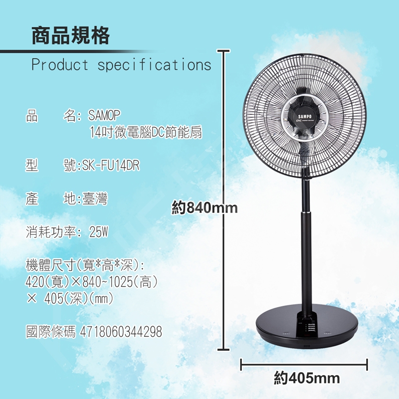 SAMPO 聲寶 14吋DC直流遙控電風扇 SK-FU14DR