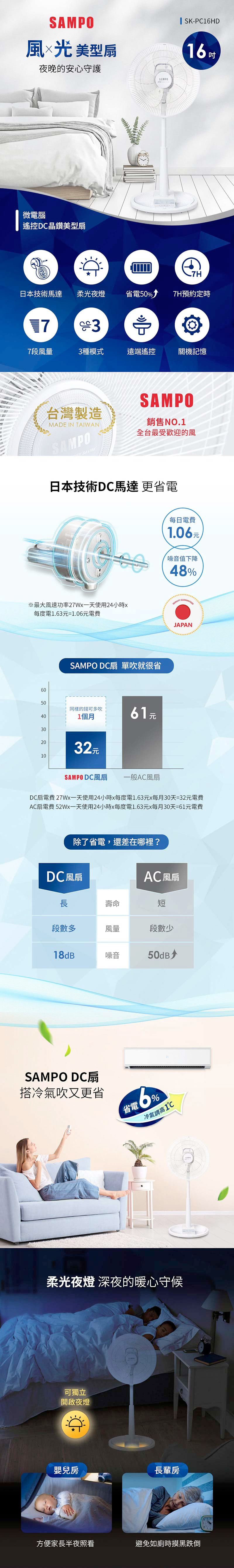 SAMPO 聲寶 16吋DC直流遙控電風扇 SK-PC16HD