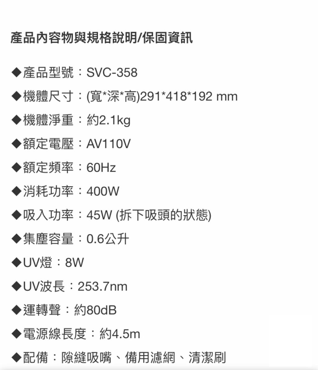 SAMPO 聲寶 Siroca塵蹣機 SVC-358